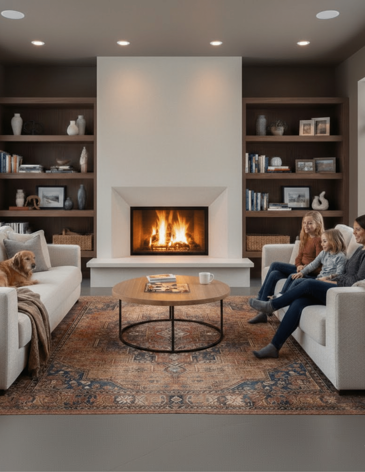 Fireplace mantels can also be designed to complement surrounding features such as built-in shelving, stonework, tile, shiplap, or accent walls. With the right design approach, your mantel becomes more than a trim piece — it becomes a signature feature in the room.